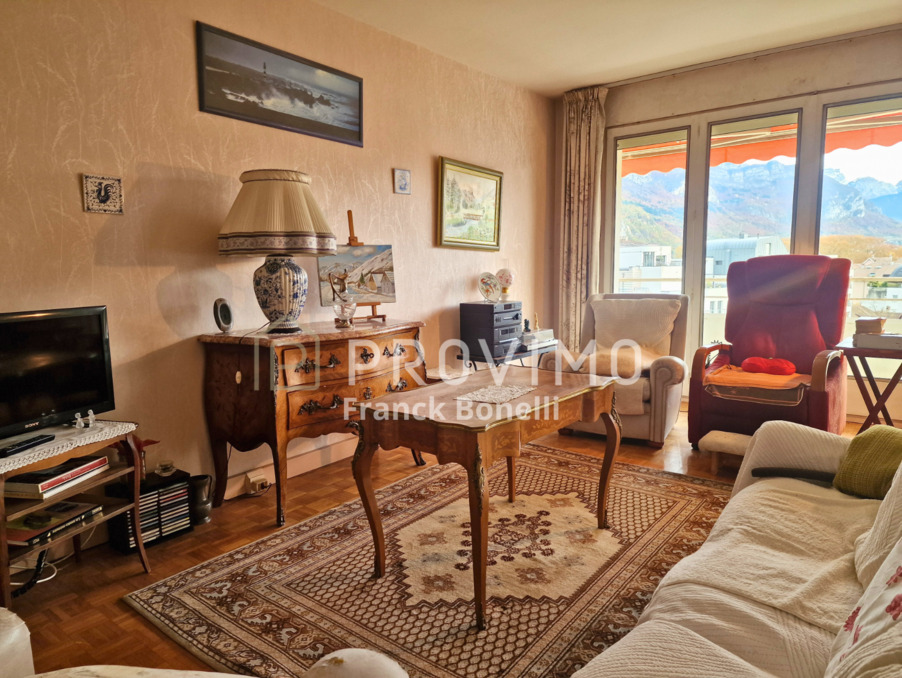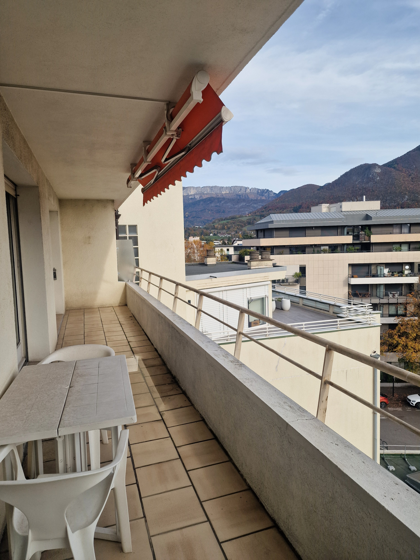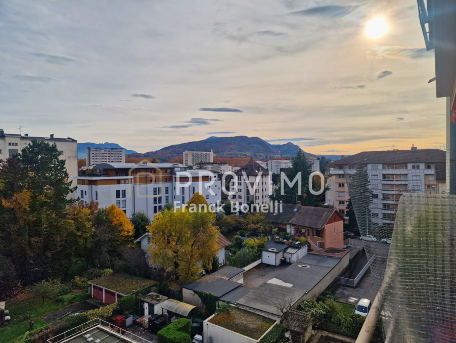 Perché au 5e étage d'un immeuble de belle tenue, il séduit par sa luminosité et sa vue dégagée sur les montagnes annéciennes et les toits de la ville.